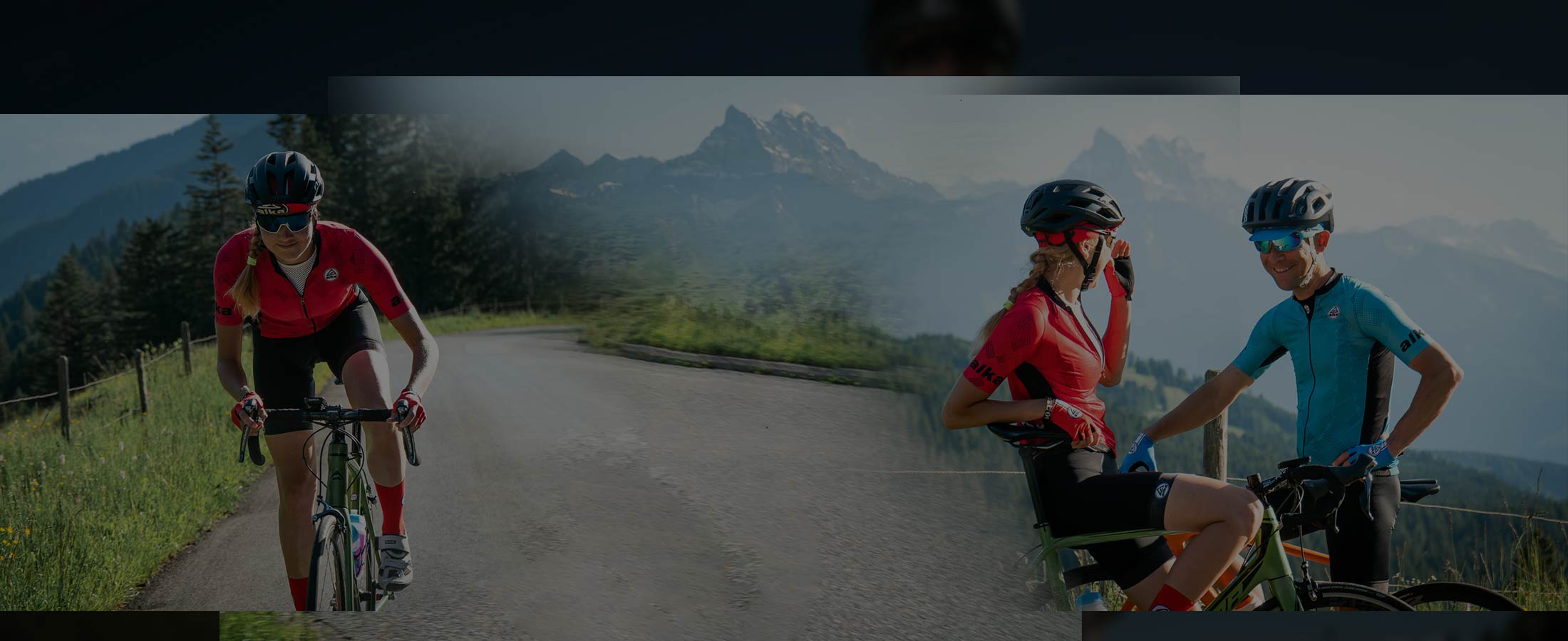 Salopette Estiva. Tessuto Lycra liscia. Bretelle in rete, finiture con bordo personalizzato Alka. Fondo gamba con materiale tecnico stabilizzante stampato.